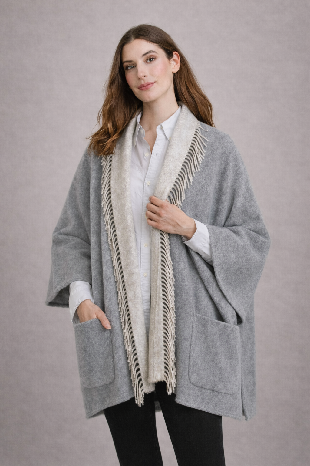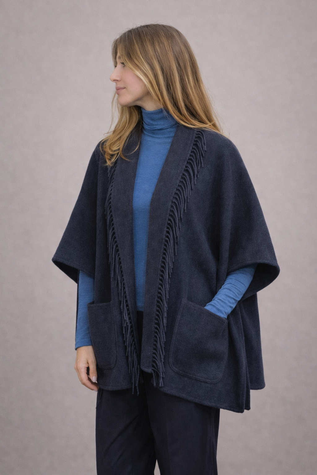 Giacca double face in 100% cashmere con frange.