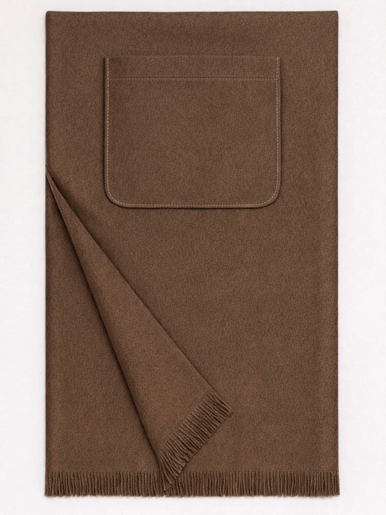 Sciarpa in 100% cashmere con tasche applicate e finitura sfrangiata. Morbida e avvolgente, dal design essenziale e naturalmente elegante.