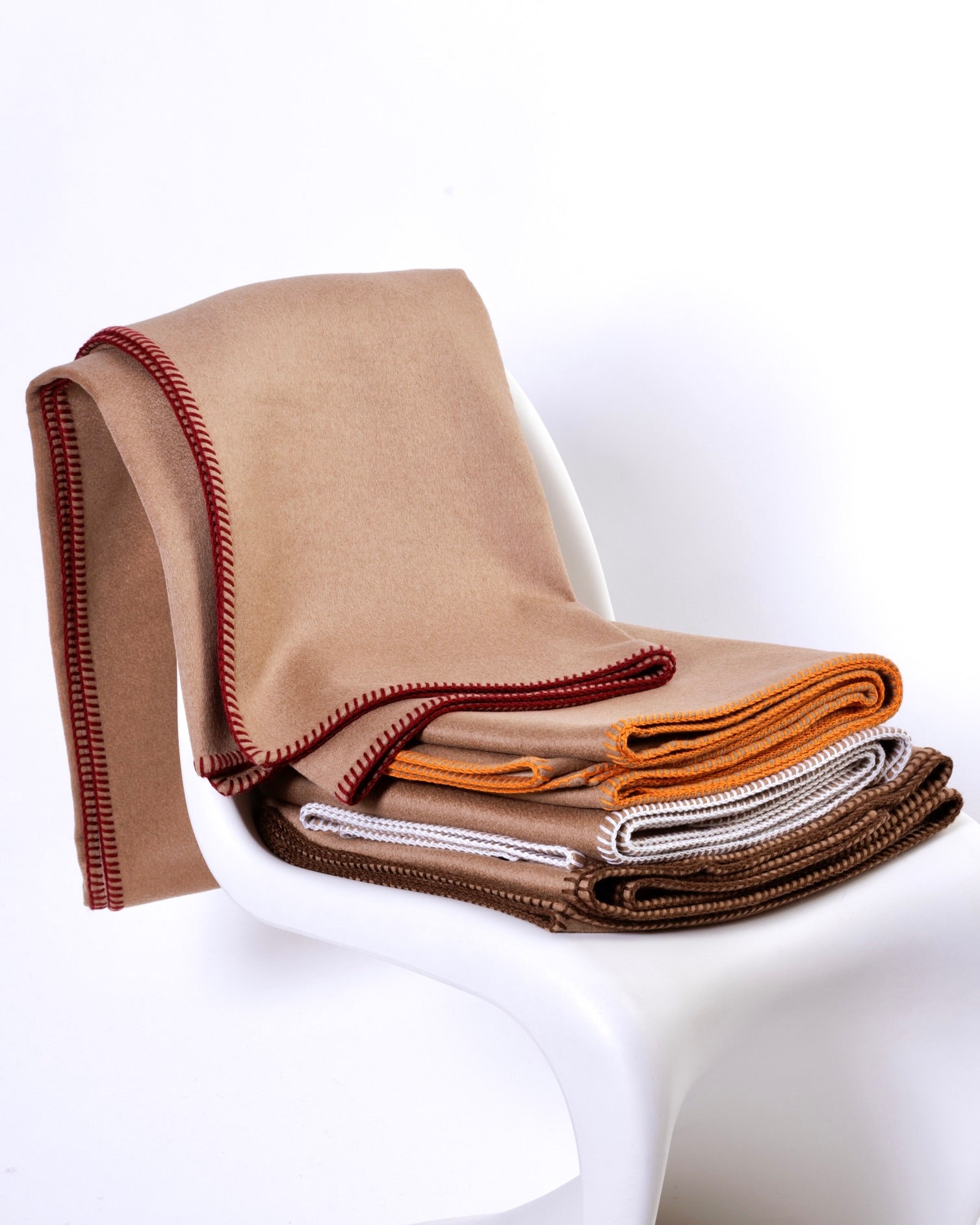 Plaid in finissimo cashmere double, rifinito lungo i bordi con punto cavallo a vista. La purezza della fibra e la cura artigianale della lavorazione creano un equilibrio raffinato, ideale per ambienti moderni come per contesti più classici. Un accessorio senza tempo che unisce comfort e distinzione.