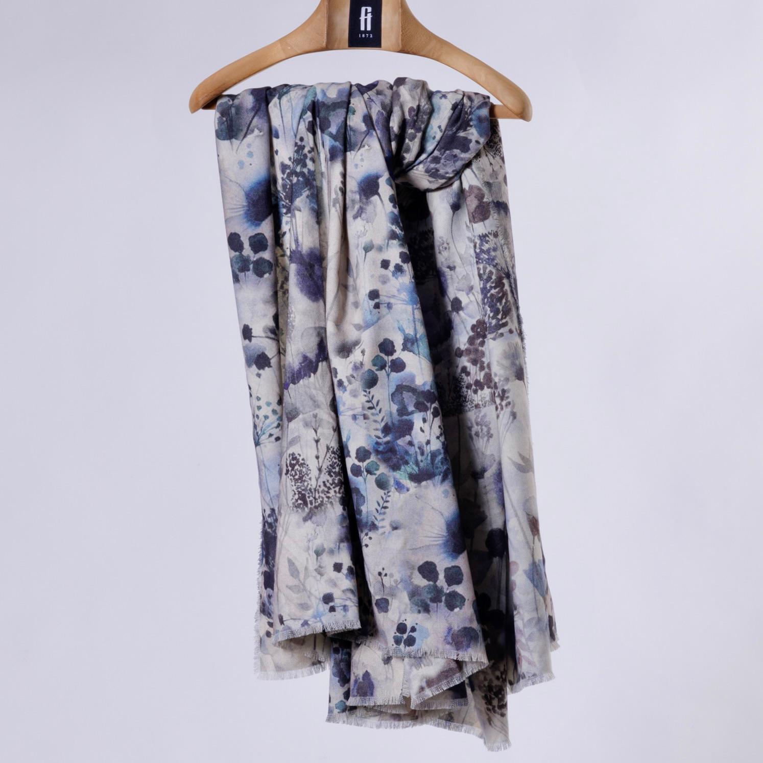 Stola reversibile in cashmere stampato.