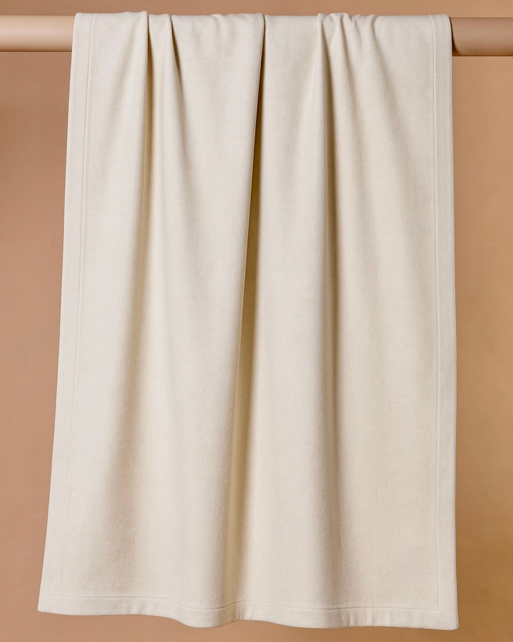 Essenziale e prezioso, questo plaid double face in puro cashmere è rifinito con un elegante bordo ripiegato, che ne esalta la struttura e la qualità straordinaria del tessuto. Un oggetto raffinato, pensato per aggiungere un tocco di sobria eleganza a ogni ambiente.